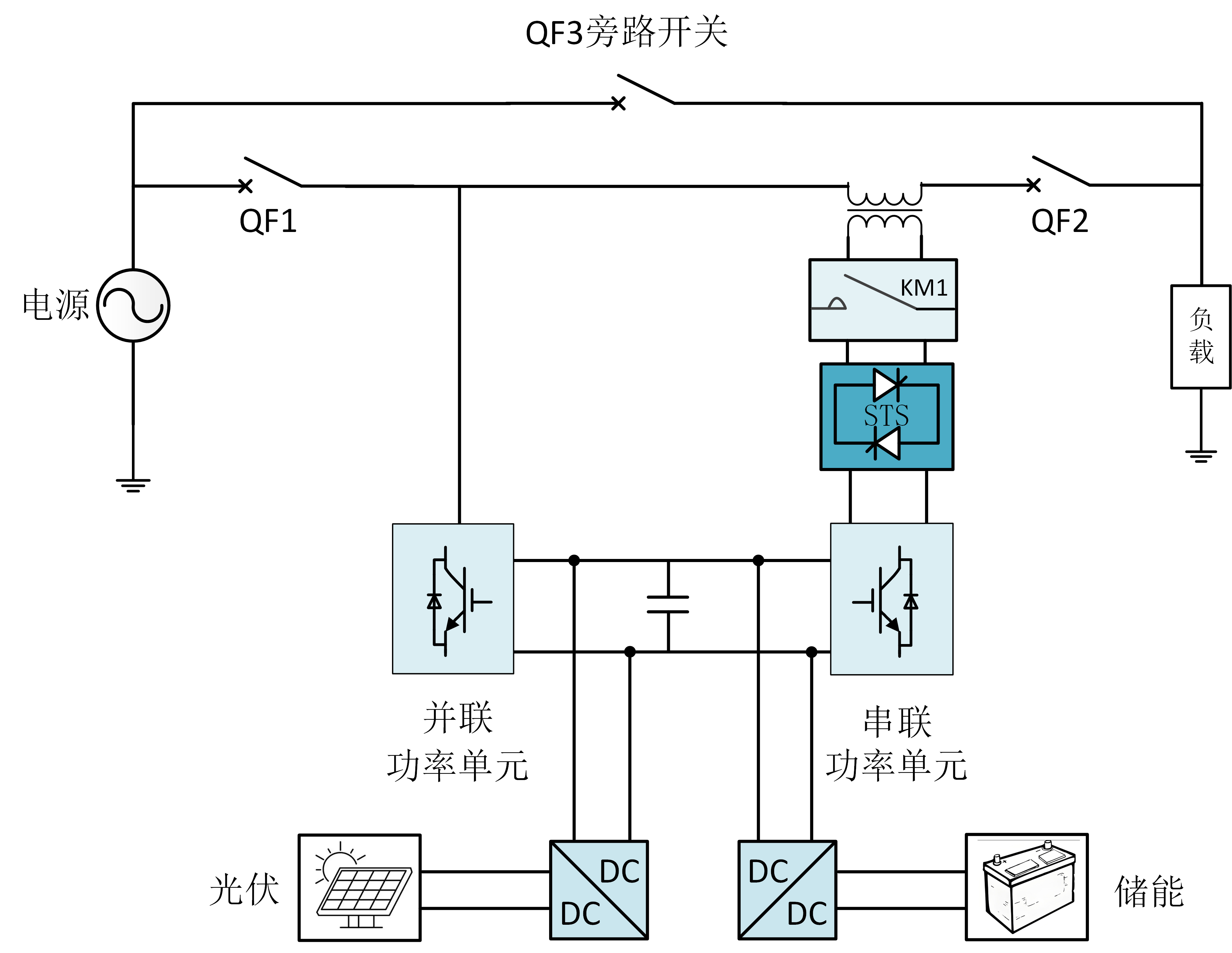 系統(tǒng)通過串并聯(lián)功率單元配合使用,完成交直流電源和設(shè)備的互通與融合;