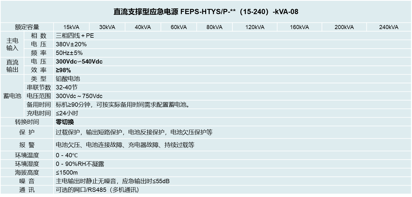四、直流支撐式EPS應(yīng)急電源· 技術(shù)參數(shù)
